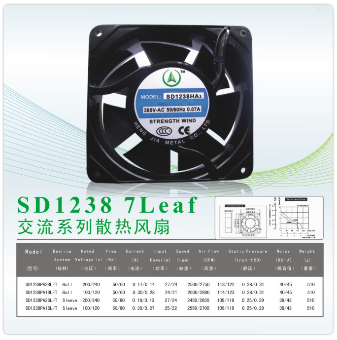 6.恒佳散熱風扇的主要型號有:SD12038 AC12038 EC12038 DC12038等。