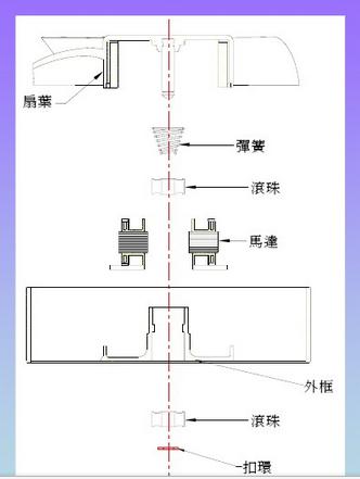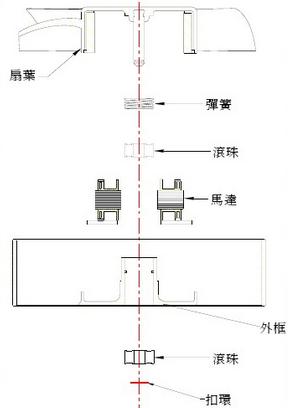一般散熱風(fēng)扇的雙滾珠結(jié)構(gòu)設(shè)計為:兩顆滾珠軸承設(shè)一中央扣環(huán)隔開,再將彈簧置放于扇葉與第一顆滾珠之中間,藉以彈力產(chǎn)生軸承之預(yù)壓,以利滾珠與保持器能夠確切定位,不至產(chǎn)生內(nèi)滾珠與保持器之滑移產(chǎn)生機械噪音。
